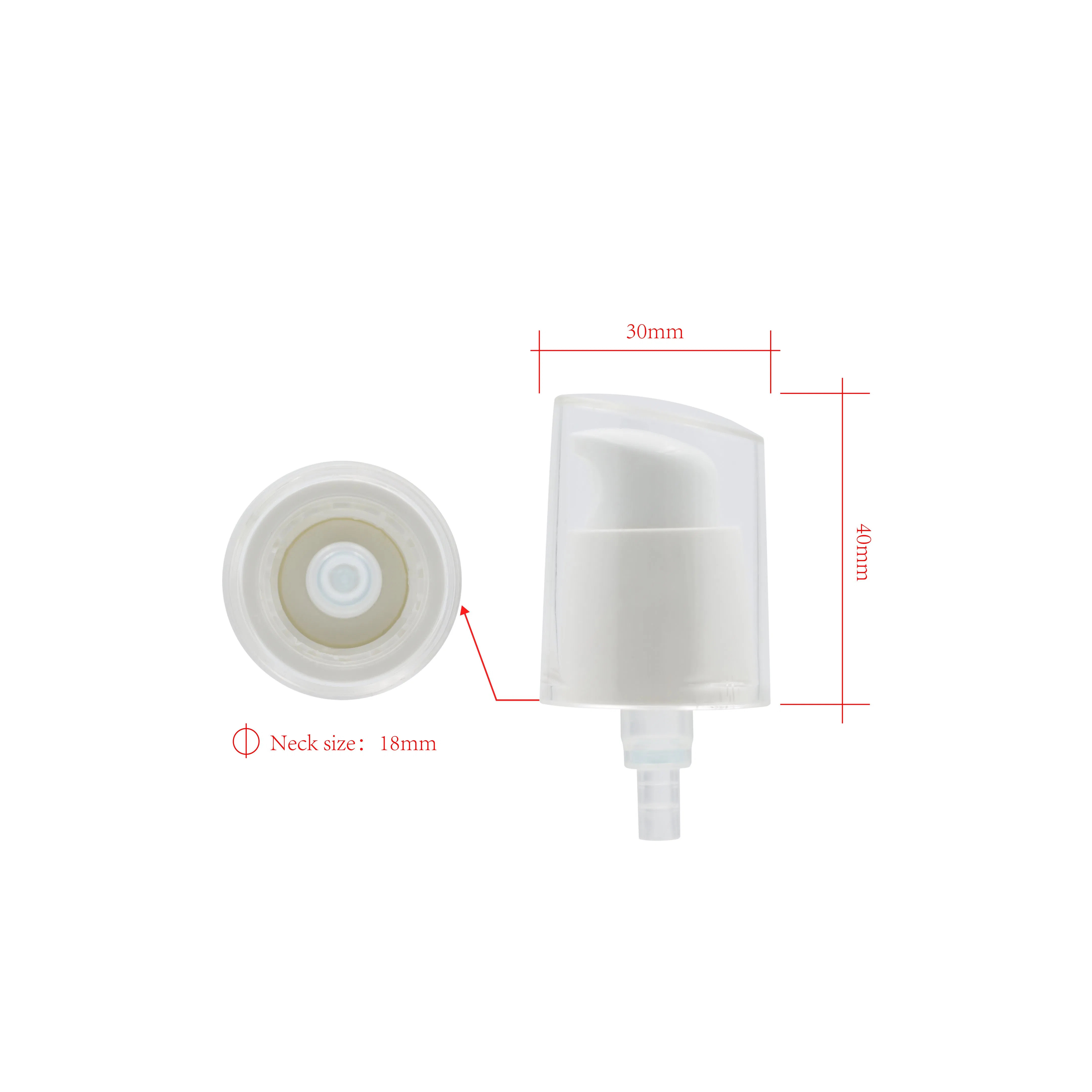 Liquid fast, Tightness good.No reflux, stability good.Switch smoothly.Environmental protection, delivery fast.Touch with spring not directly, use safe and rest assured. Item No.SP-B0260Total height40mmDiameter30mmNeck size18mmmaterialPPusagefor packing skin care lotion, Moisturizing cream,exfoliatin......