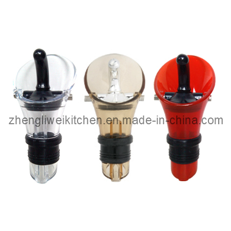 AS wine pourer and stopperItem No.: 700065-13Material: AS, rubberSize: 8x3.8x4.5cmWeight: 16gColor: Transparant, red, yellow(5000PCS per color)Packing: PVC box, display box144PCS/export cartonExport carton size: 39*34*27cmGW/NW: 4.5/2.5KGS