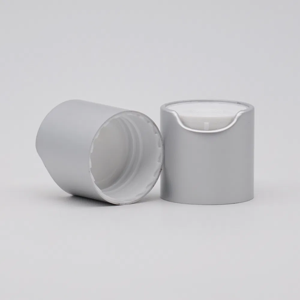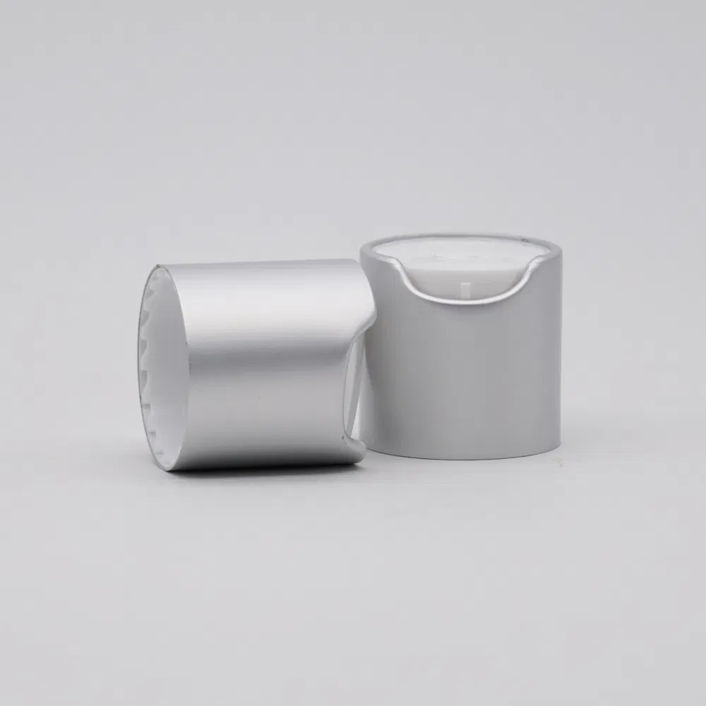 product picture Product DescriptionKey word:Disc top capFeature:Easy lock and openColor:Customized colorMaterial:PP plastic inner cap, aluminum sheathed outsideDelivery time:30days after get your deposit Cap type:Screw neck Application:Shampoo,lotion,body lotionPackage:One by one in foam wave plate ......