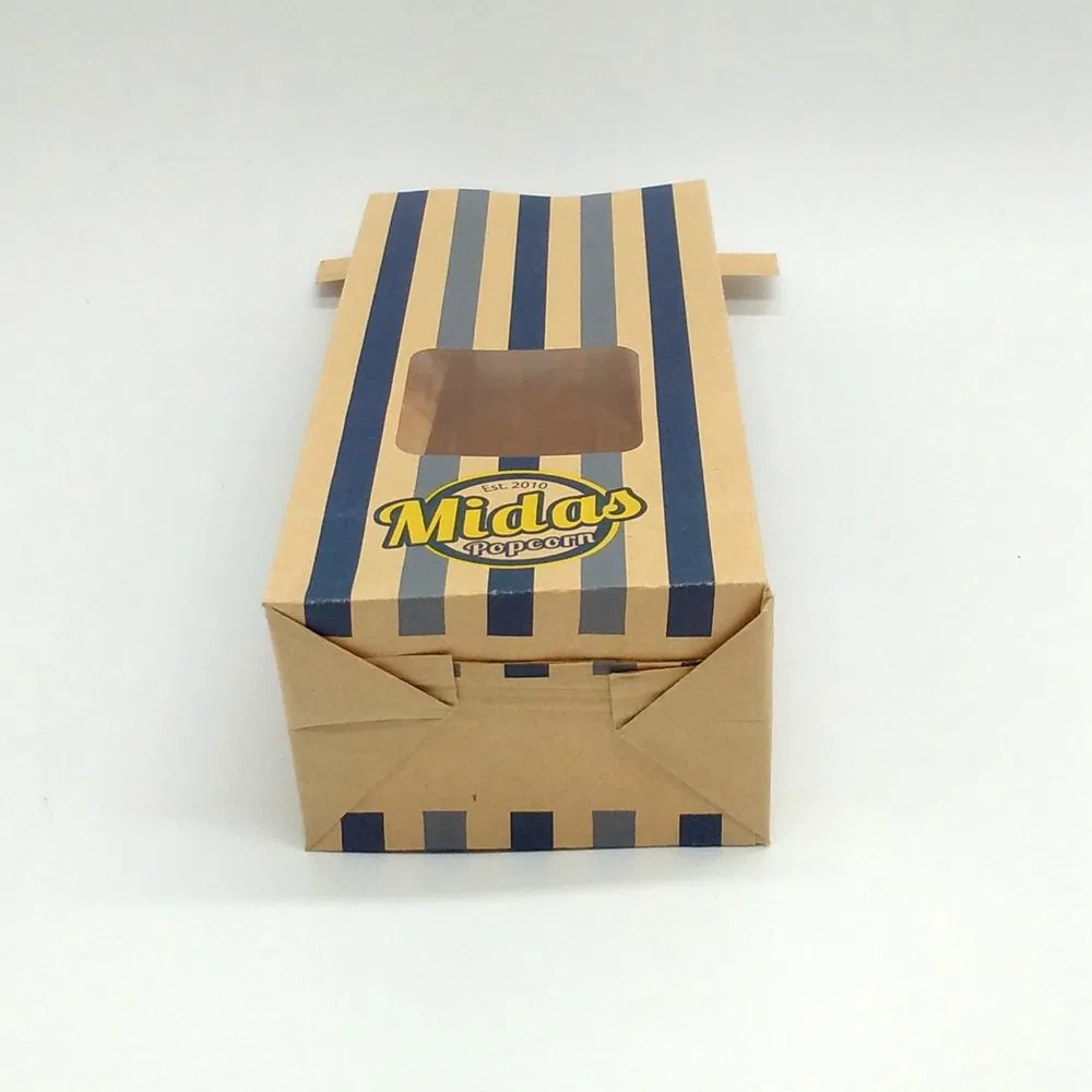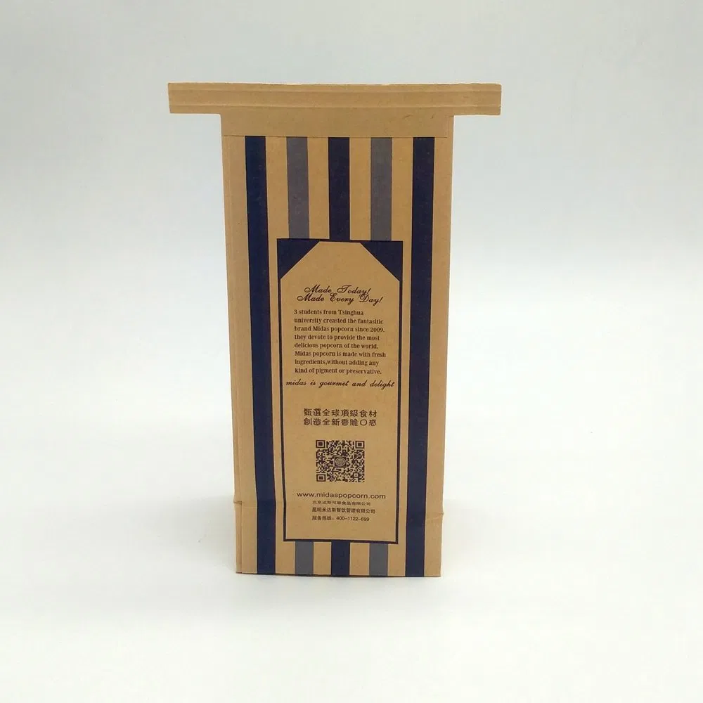 POPCORN PAPER BAGSize:140*289*100mm 70*330*80mm or CustomedPrinting: CustomedPacking:1000-2000pcs/CTNWeight:23.7kg/CTNMOQ:10000pcsDelivery time: 30days