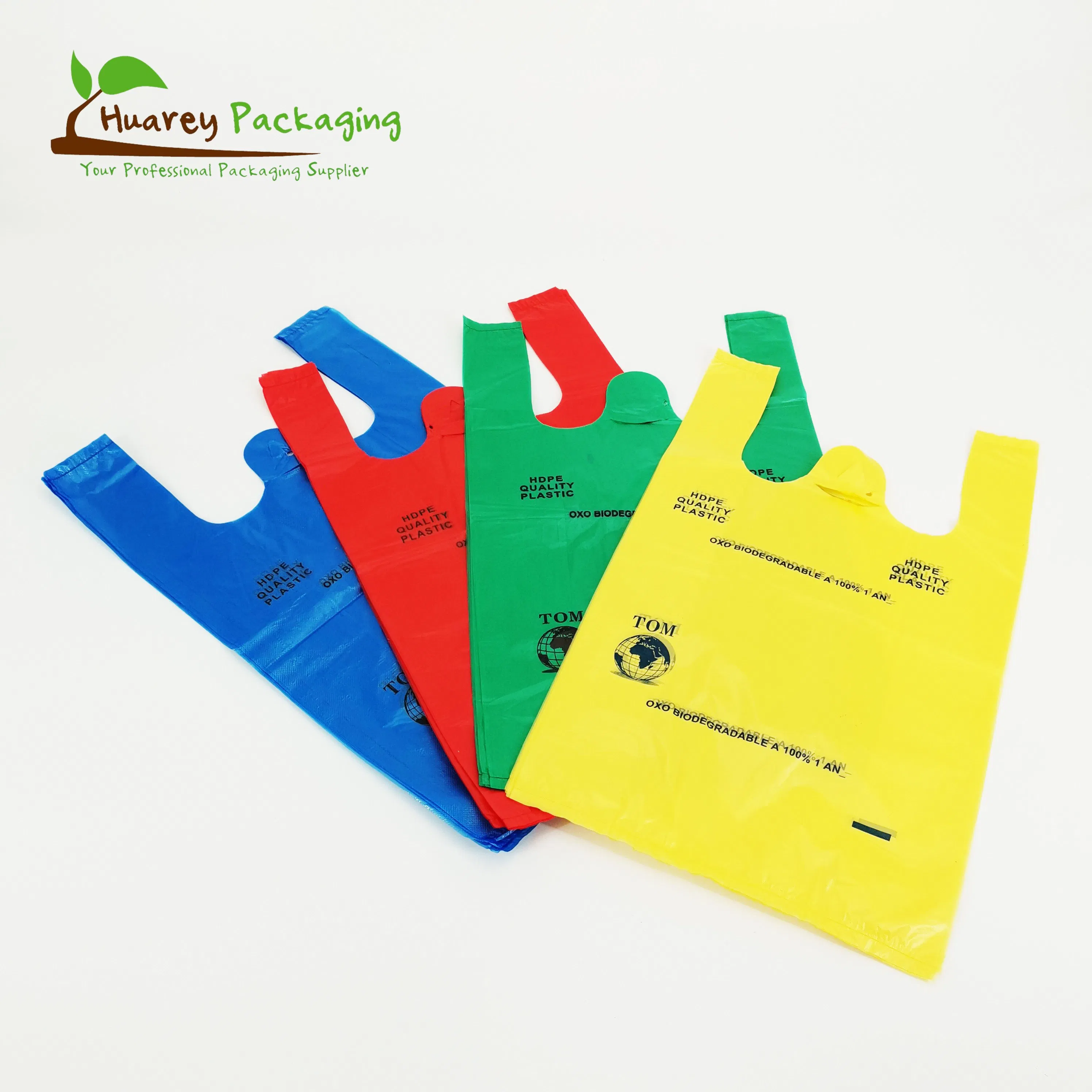 1. Product DescriptionPlastic T-Shirt Shopping Bag for Supermarket ItemPlastic T-shirt BagFeatureReusable, durability, water-proof, biodegradable (optional)UsageSupermarket, shopping, promotion or groceryMaterialHDPE/LDPE/MDPESizeStandard size or as customers' requirementThickness6 to 50 microns......