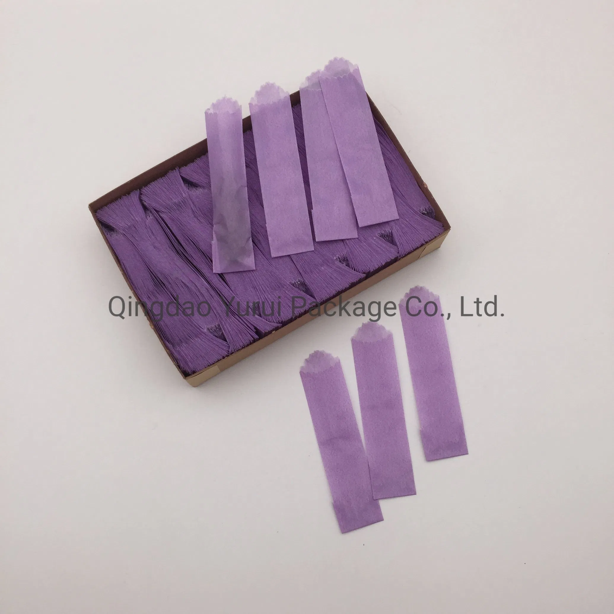 Custom 40g Greaseproof Wax Paper,white Mini wax paper bags ,Vellum Glassiness stamp bags ItemWax paper bagMaterialwax paperSize27x76mm. Other popular size : 20x76mm, 24x76mm, 19x76mm, 27x76mm, 32x76mmThickness37g, 40g, as customer requirementsCharacterwax paper bagApplicationPill, tablet, coin, pow......