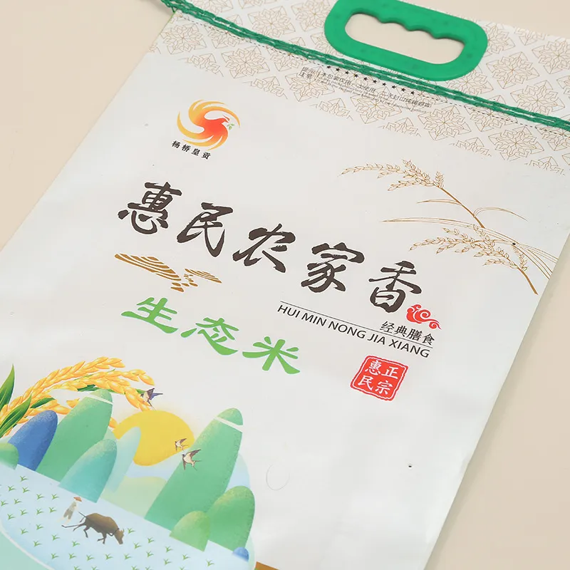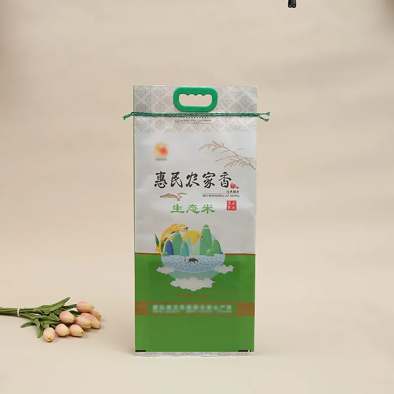 Bag style | Custom Print Plastic With Handle Side Gusset Vacuum 5kg 10kg Rice Packing Bag |