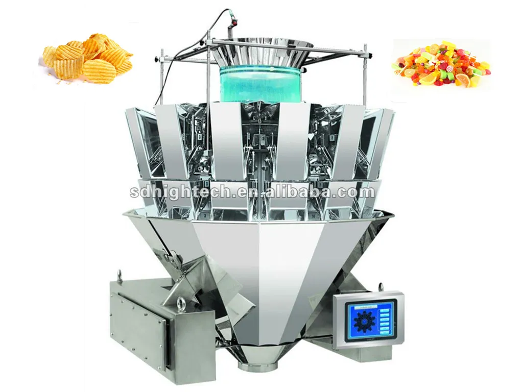 It's suitable for quantitative weighing granule, slice, roll or irregular shape products such as candy, seed, chips, pistachio nuts, nutlet, preserved fruit, jelly, frozen foods, biscuit, raisin, almond, chocolate, nuts, corn, pet food, puffy food, small metal and plastic parts etc.