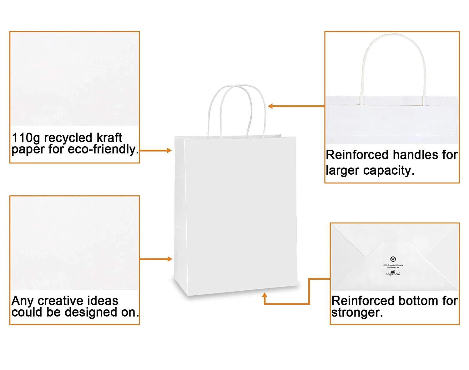Item:kraft small white craft paper shopping bag with handles bulk | Size:15X9X20.3CM |