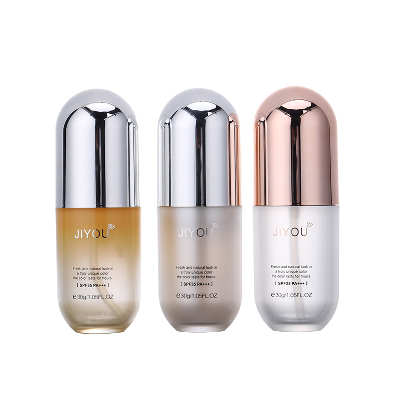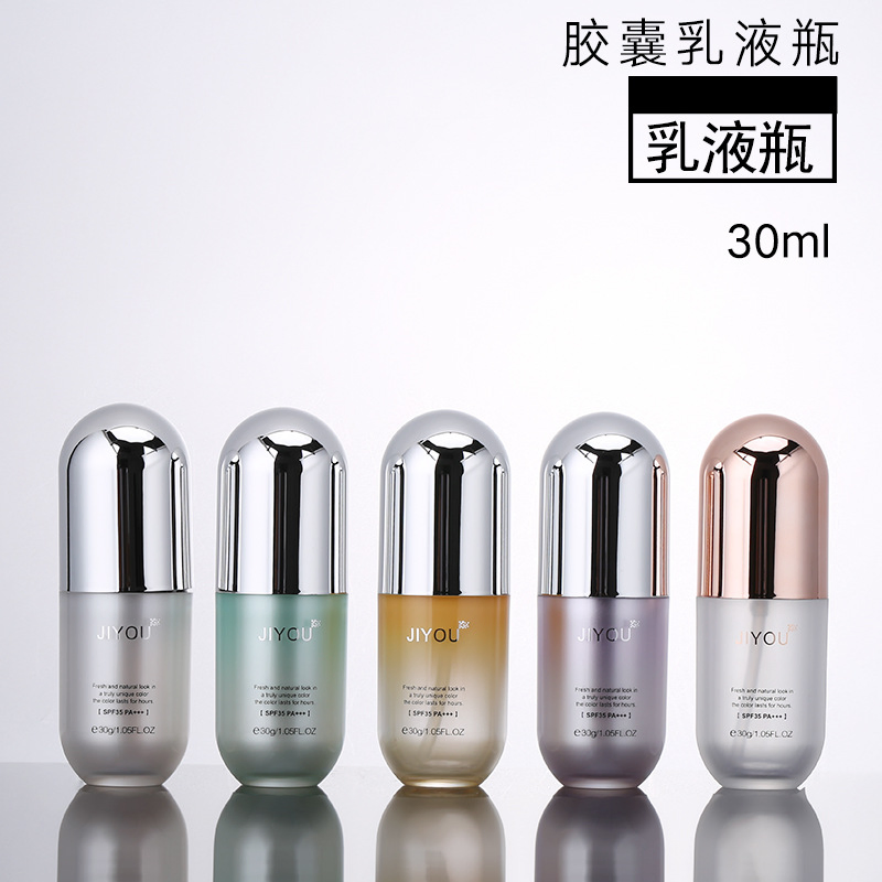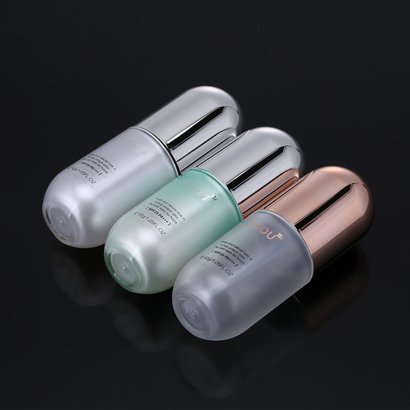 30ML new design capsule shape plastic cosmetics lotion bottle for foundation make up packaging Item namecapsule shape plastic cosmetics lotion bottleMaterialPMMA BOTTLE BODY+PCTA CAP+PP INNER BOTTLEBottle bodyinternal spray gradual change grey,light blue. or internal spray rose goldInner body PP in......