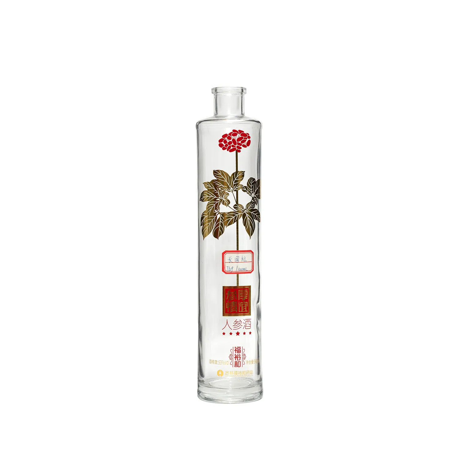 Premium Delicate Durable 250ml 500ml 750ml Glass Bottle Round Shape Liquor Bottle with Decal Surface